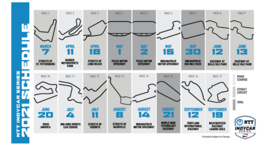 INDYCAR ANNOUNCES 17-RACE SCHEDULE FOR 2021 SEASON